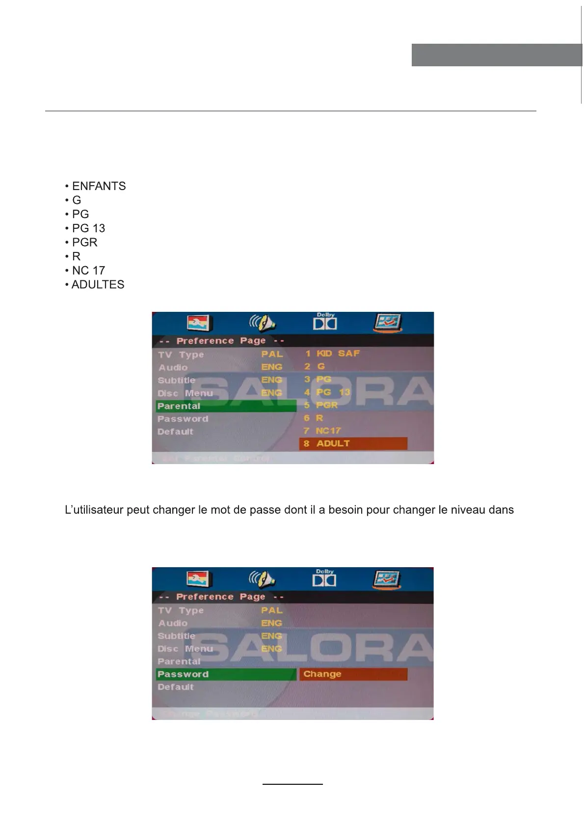 Si vous reproduisez un disque avec contrôle parental, vous pouvez vous-même