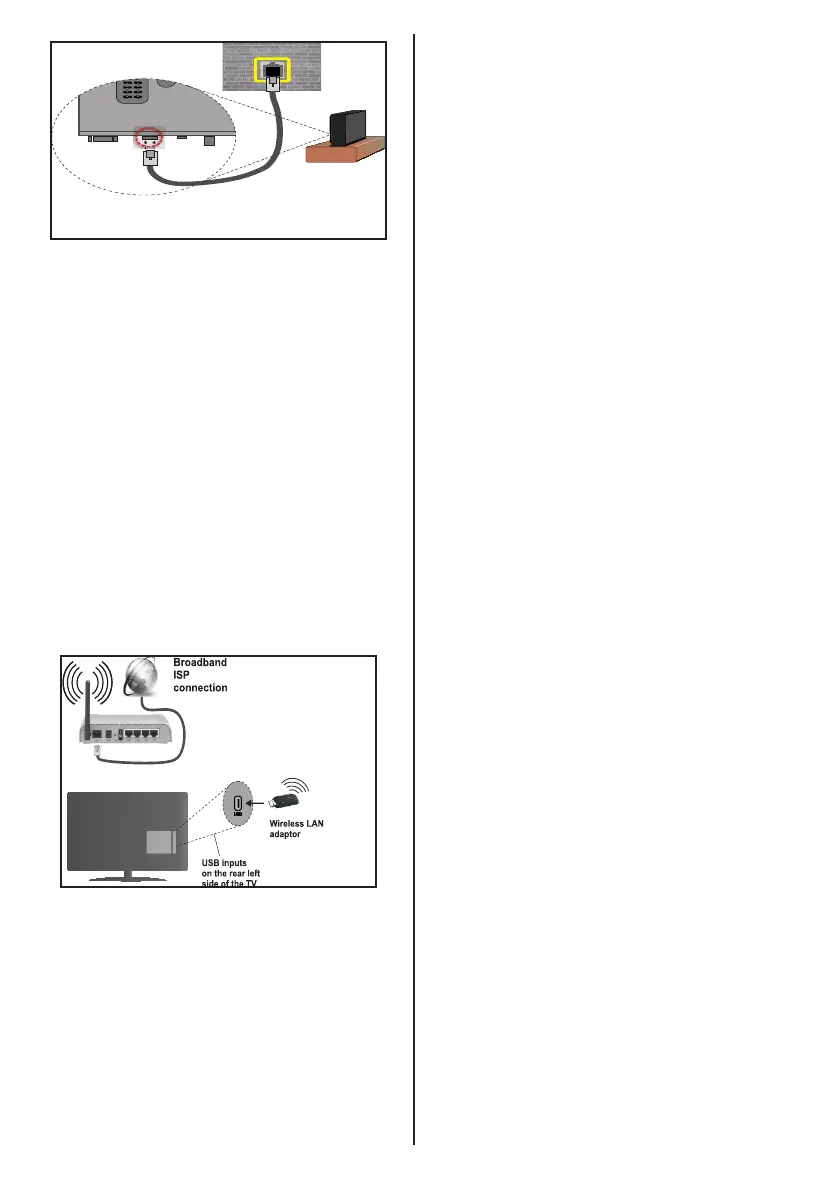 Om du ansluter TV:n via ETHERNETINGÅNG, välj