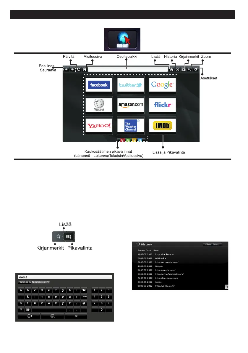 •Navigoi nettiselaimessa kaukosäätimen nuolinäp-
