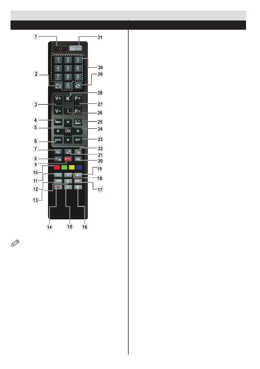 30. Siffertaster: Brukes til å bytte kanal eller skrive