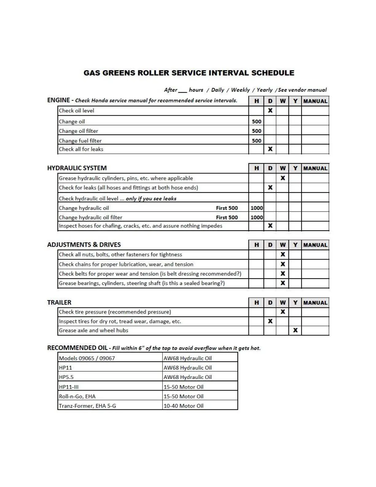 Salsco 09067 - Service Interval Schedule