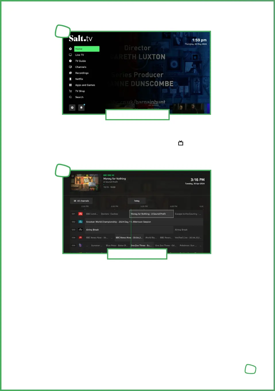 The list of channels and favourites is represented by the channel logos. You can switch