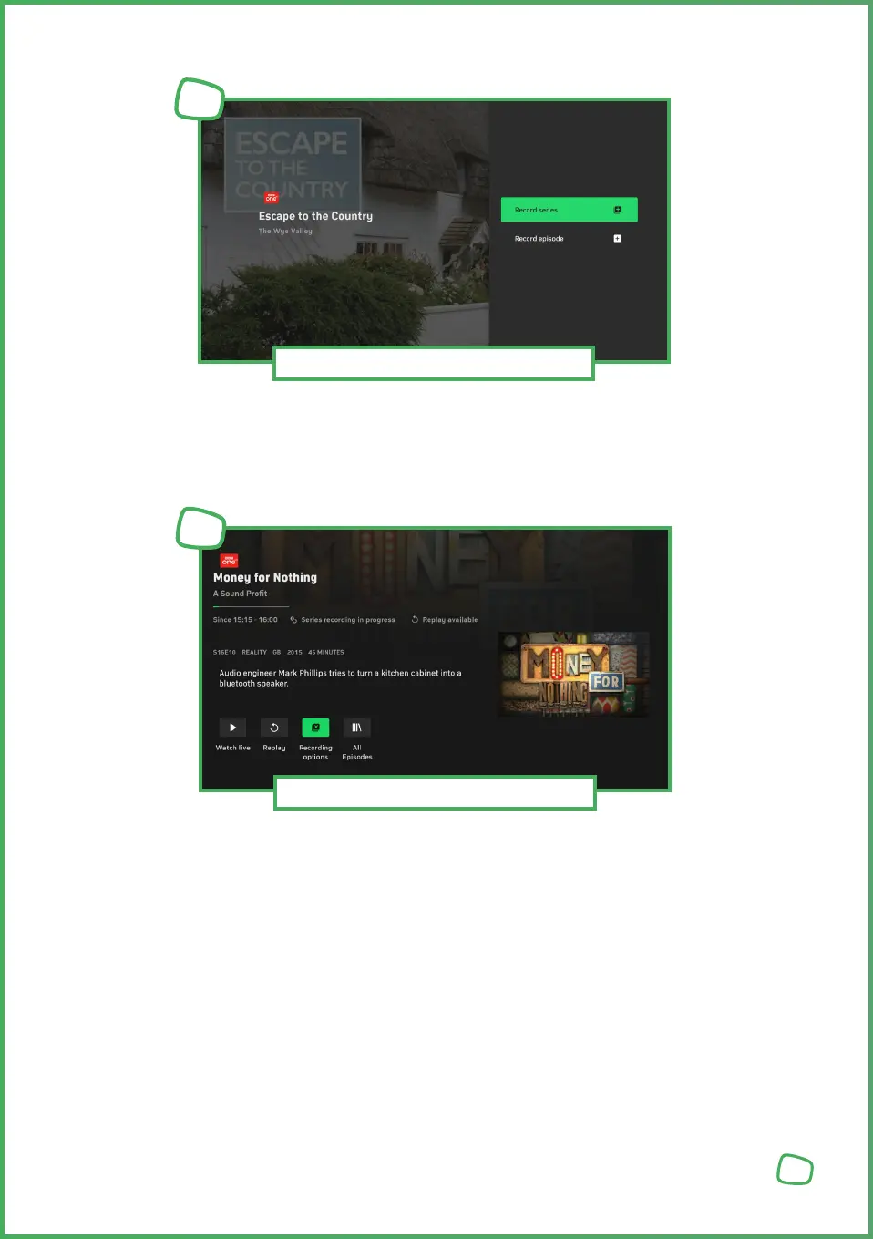Recording Series — Click on [RECORDINGS_ICON] to record the programme. You will have