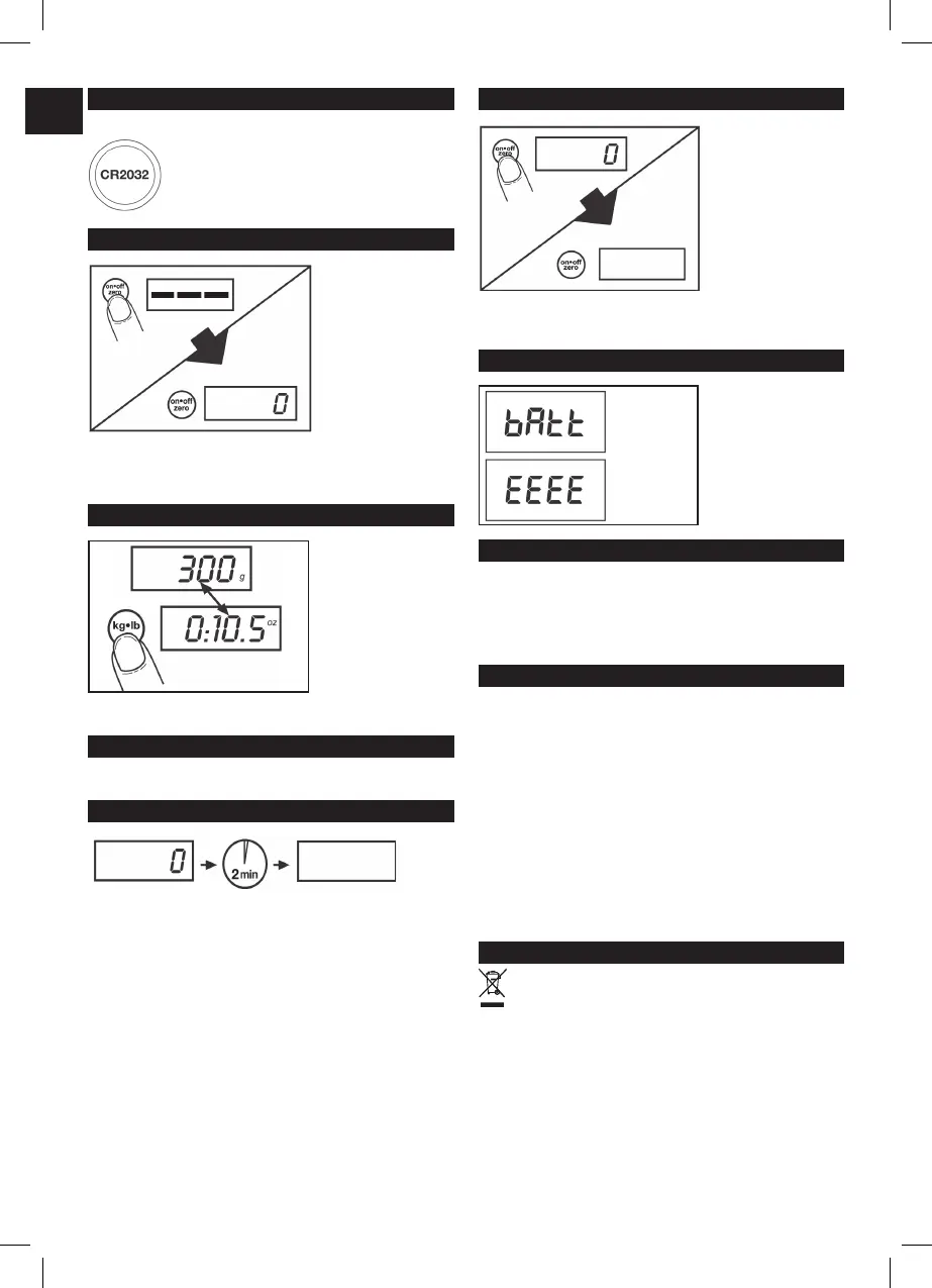 • Maak de weegschaal met een licht vochtige doek schoon. Dompel de weegschaal