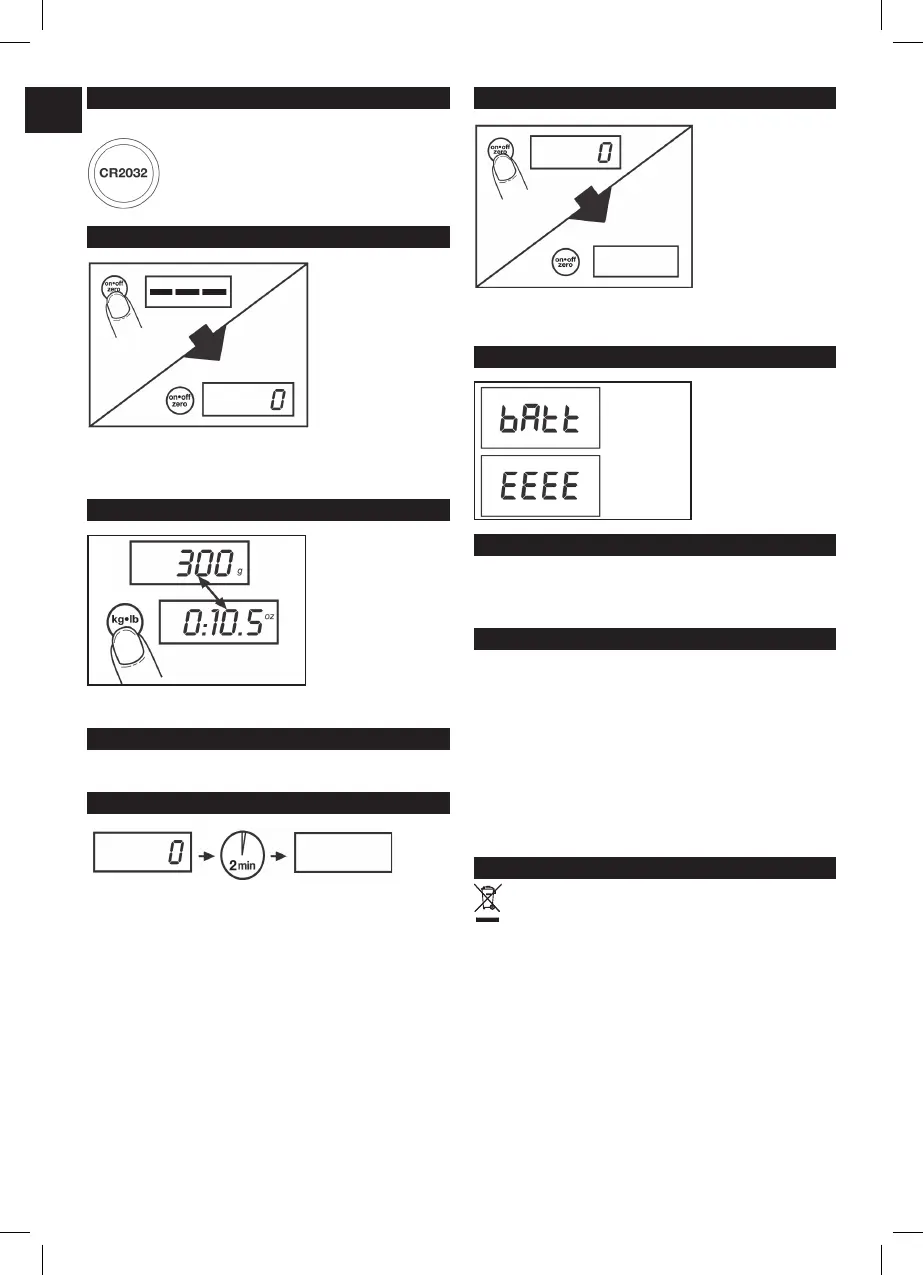 Vågen stänger av sig automatiskt om vågen visar 0 i 2 minuter eller efter att ha visat