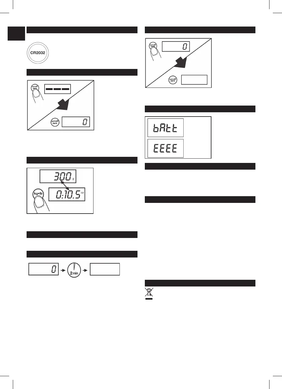 A mérleg automatikusan kikapcsol, ha a kijelzőn 2 percig a 0 érték látható, vagy