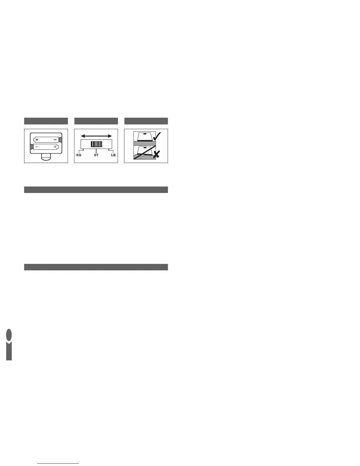 • Foretag altid vejning på den samme vægt anbragt på den samme gulvflade. Lad være