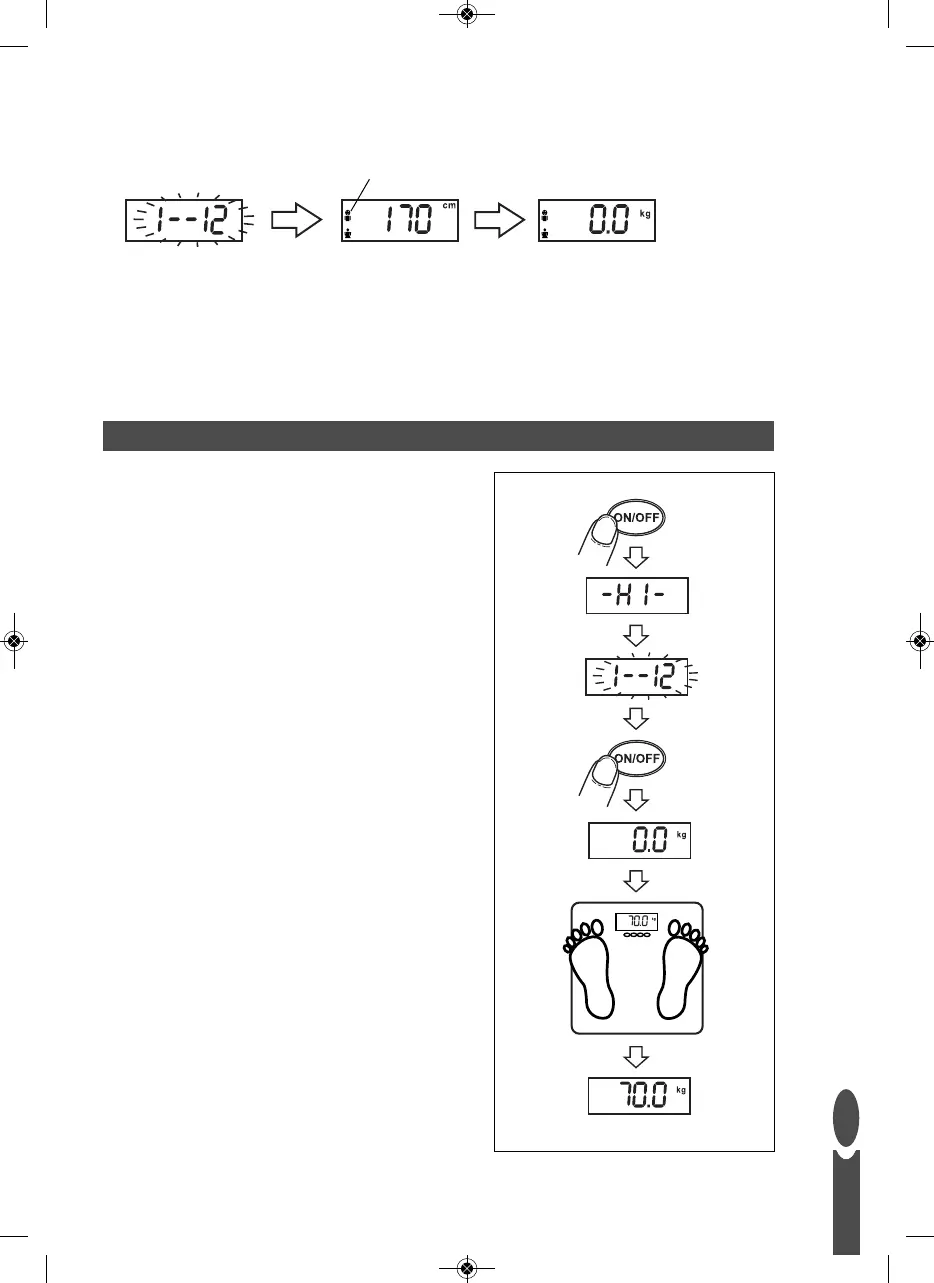 8) ‘1-12’ will flash, then your height and gender will be displayed.