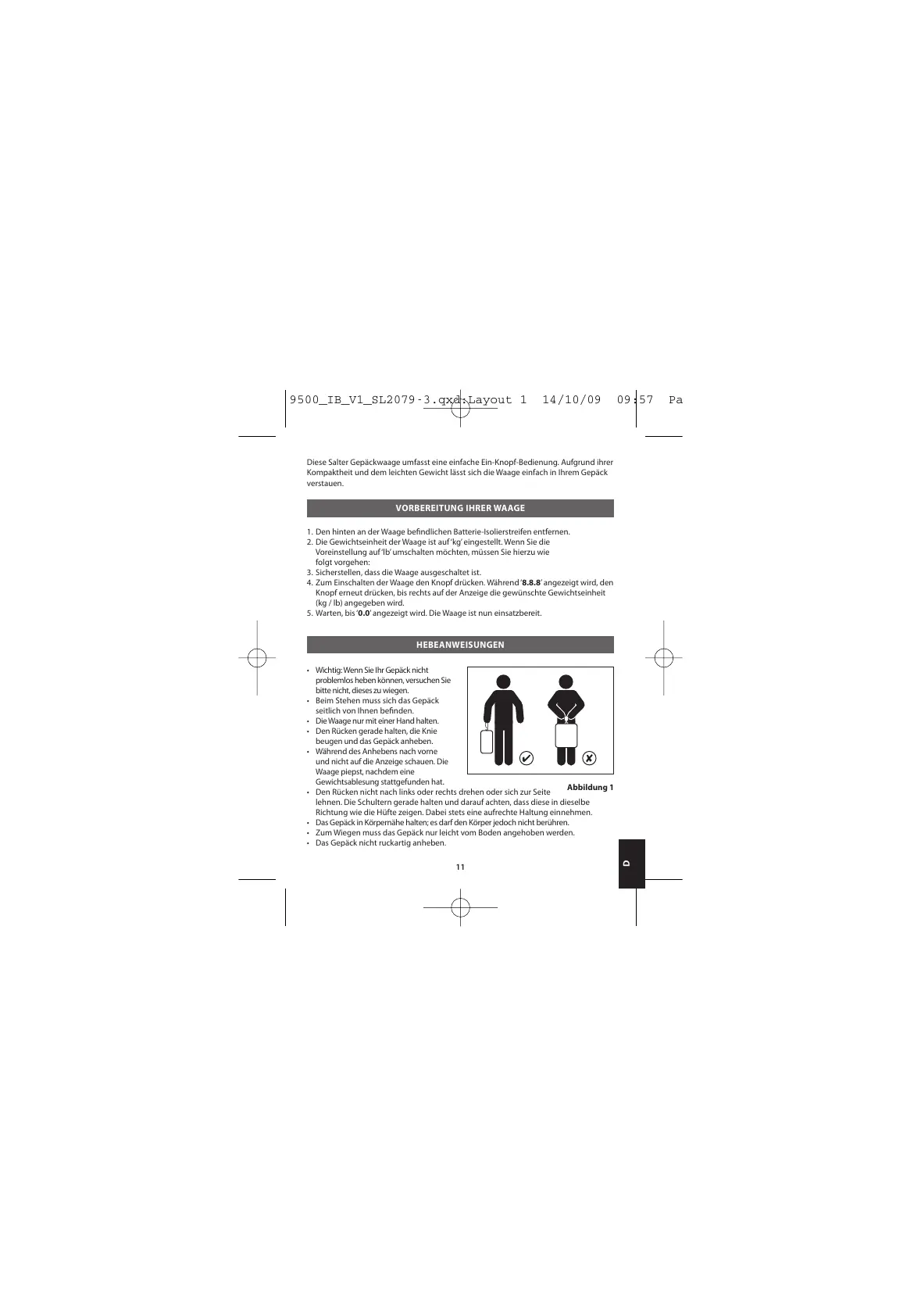 • Das Gepäck in Körpernähe halten;es darf den Körper jedochnicht berühren.