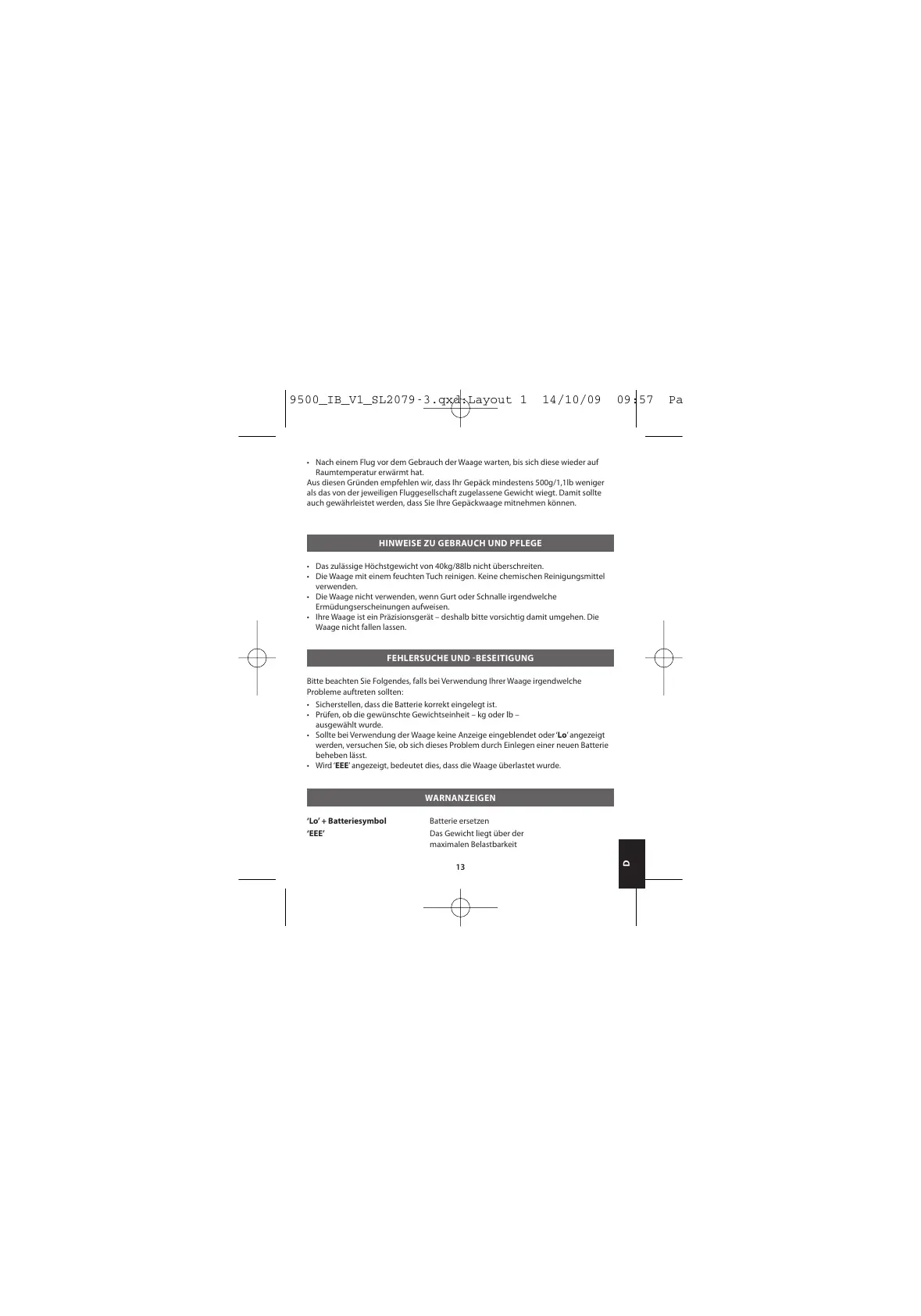 auch gewährleistet werden, dass Sie Ihre Gepäckwaage mitnehmen können.