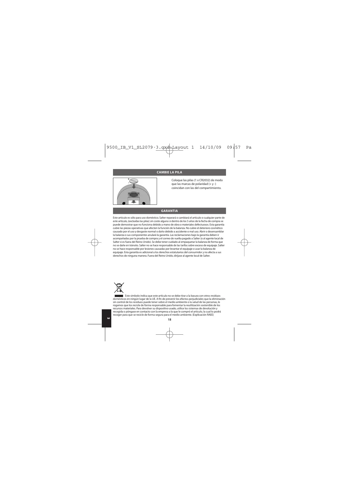 Este artículo es sólo para uso doméstico. Salter reparará o cambiará el artículo o cualquier parte de