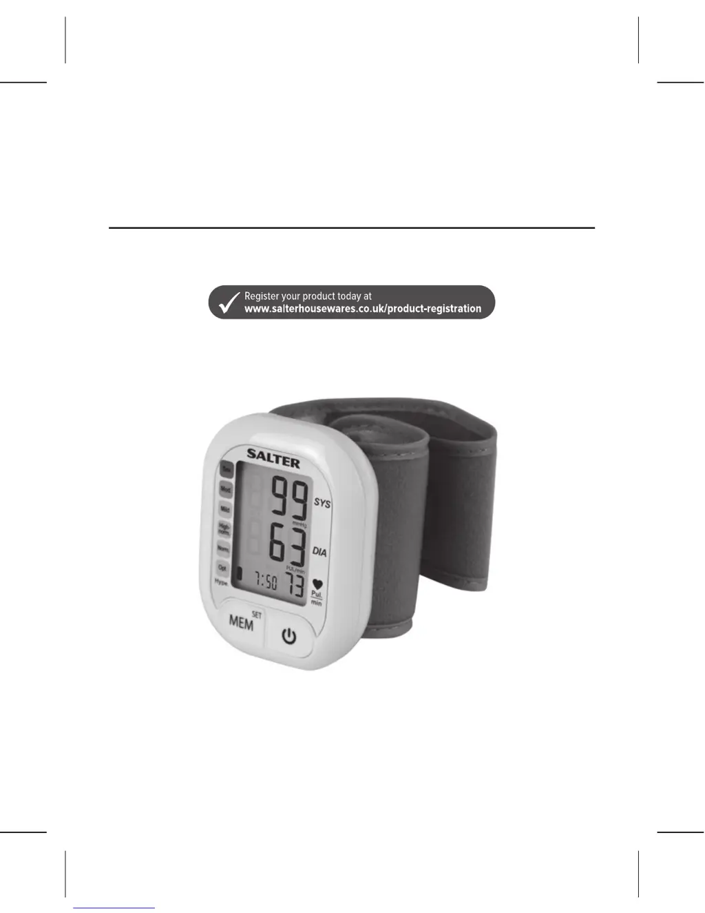 If your Salter Blood Pressure Monitor displays an error message, several issues could be the cause: * The cuff may not be secure or may be too tight - refasten the cuff and measure again. * The cuff pressure might be excessive - relax for a moment before measuring again. * Motion was detected during measurement - relax and remeasure. * The monitor isn't detecting a pulse signal - loosen clothing on the wrist and try again. * The measurement was taken incorrectly - relax and repeat the measurement. * A calibration error occurred - retake the measurement. If it continues, contact the retailer or customer service for help.