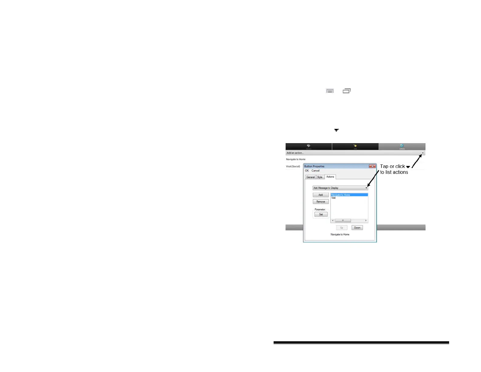 To add or modify a button’s action: