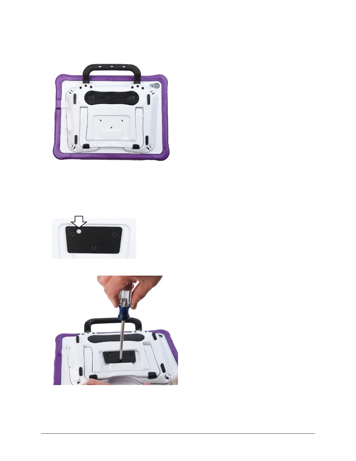 Three threaded holes are provided on the back of the device for attaching an optional wheelchair