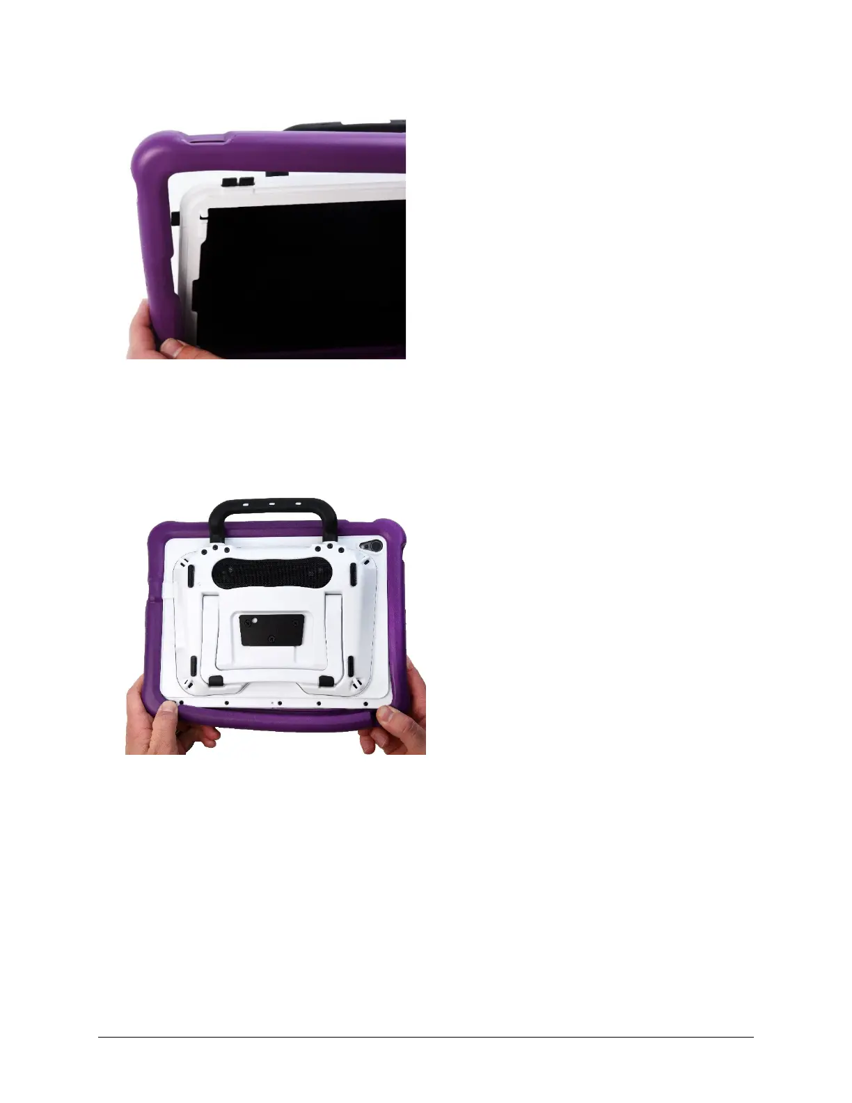 1. Align the holes in the top corner of the wrap with the device power and volume buttons. Push the