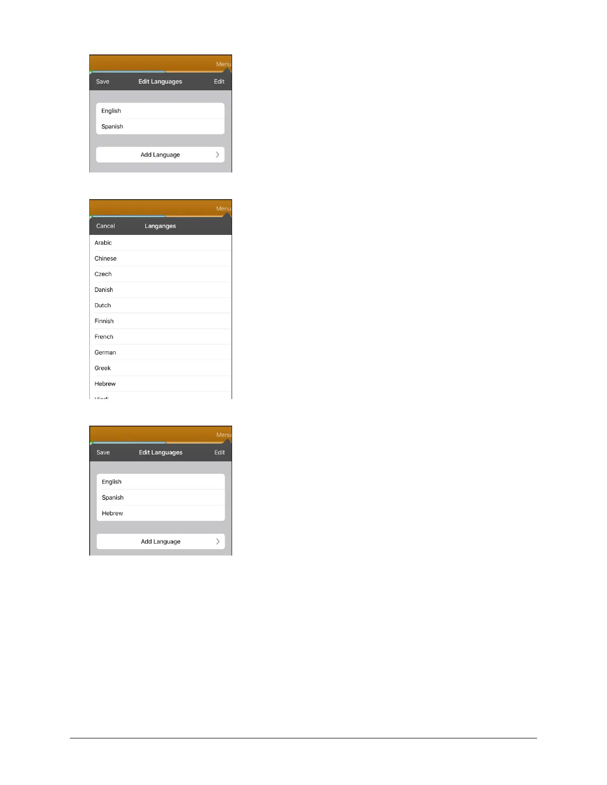 5. Tap Add Language to open a list of available voice languages.