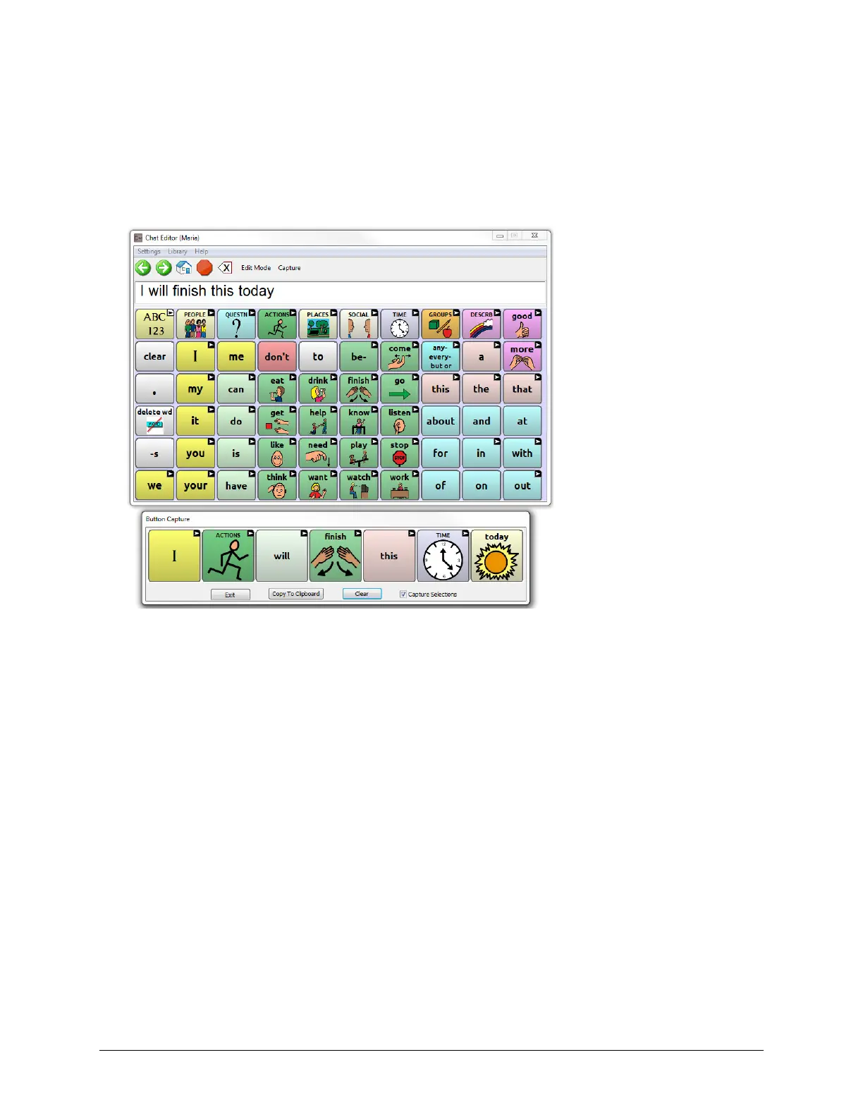Capture sequences of buttons from screens in ChatEditor to paste into instructional materials you create