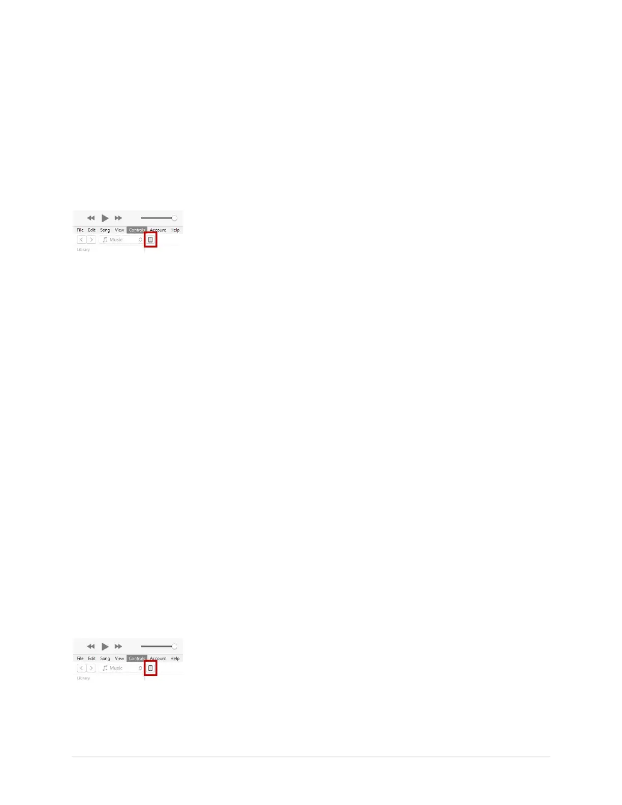7. In iTunes on the computer, click the small device icon in the upper left portion of the window.