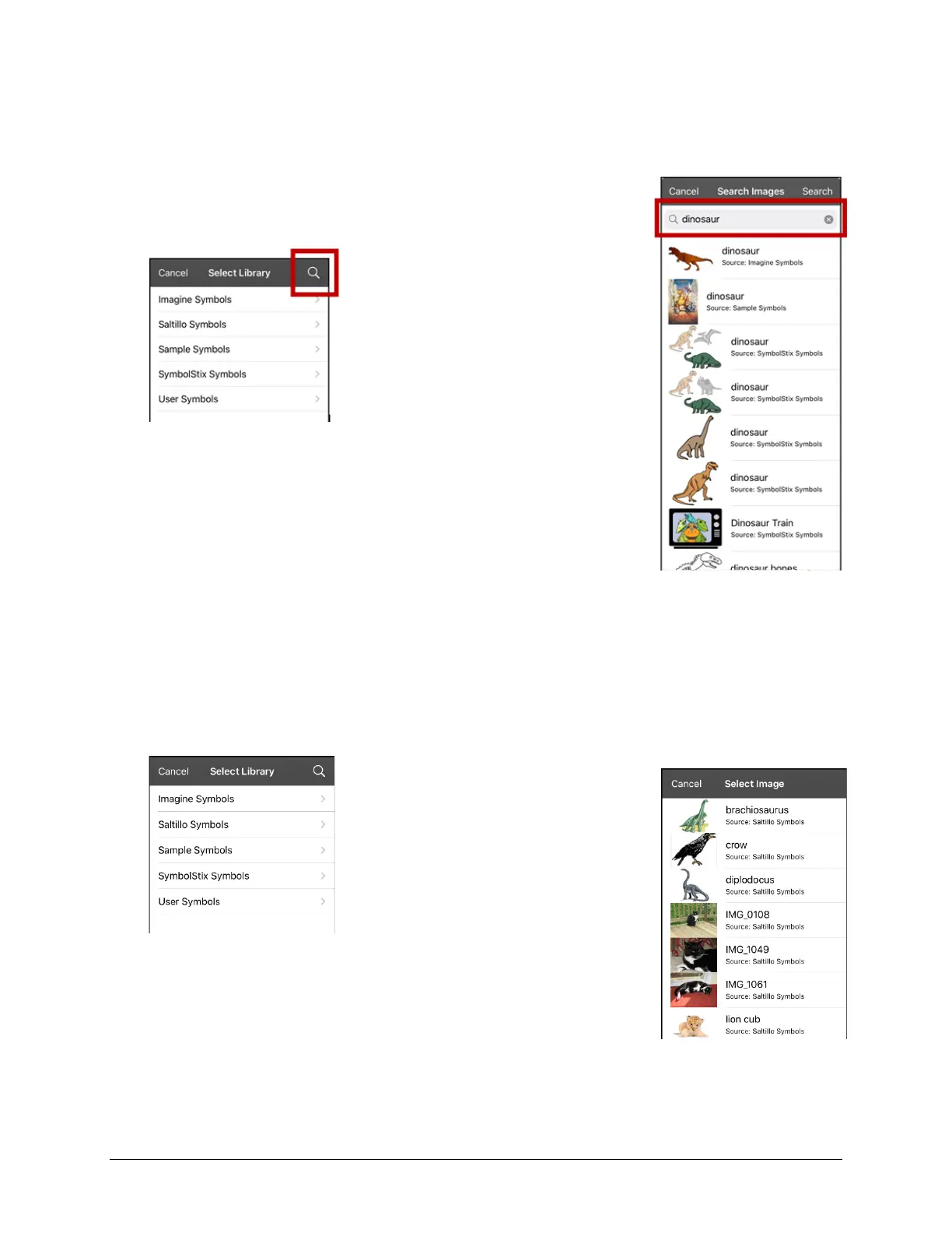 7. Tap Search on the keyboard. Image names will be listed with