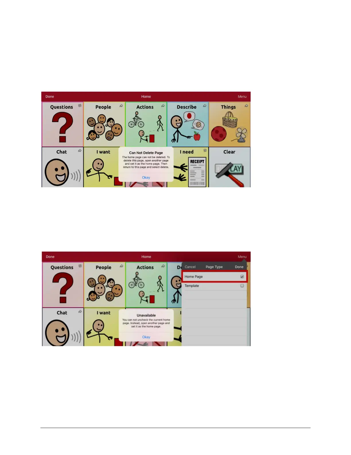 Home Page in the Page Type field. In the Page Type window, tap the Home Page checkmark. A message