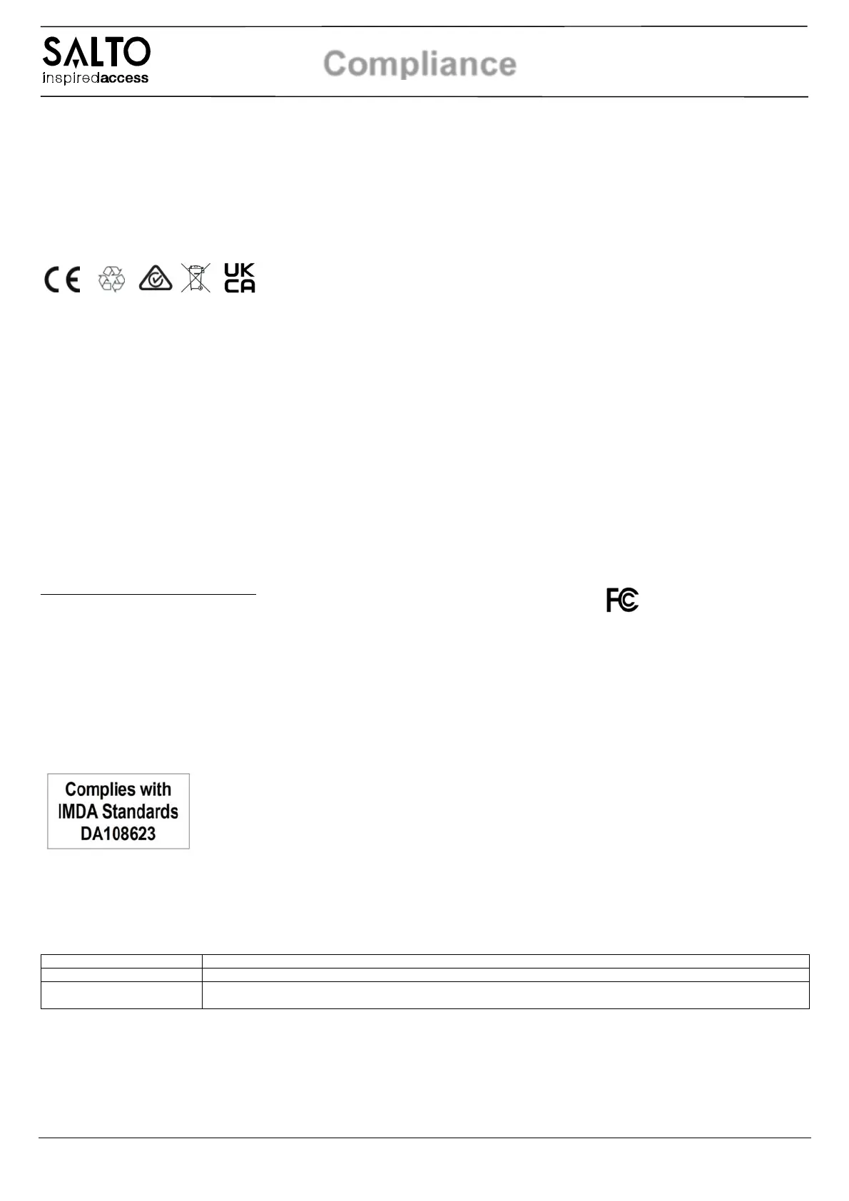 We, SALTO Systems, S.L., hereby declare that the equipment bearing the model number specified above was tested conforming to the applicable FCC Rules.