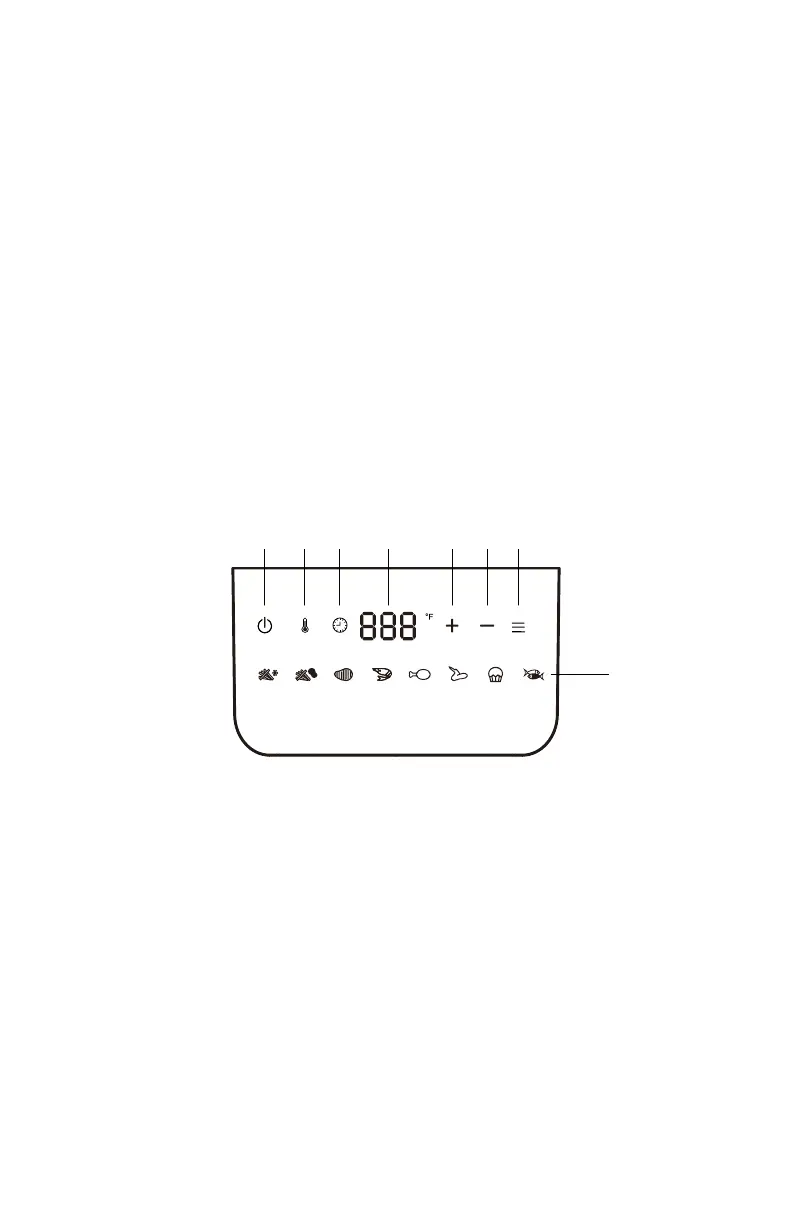 7. Digital Display. Shows cooking time and temperature.