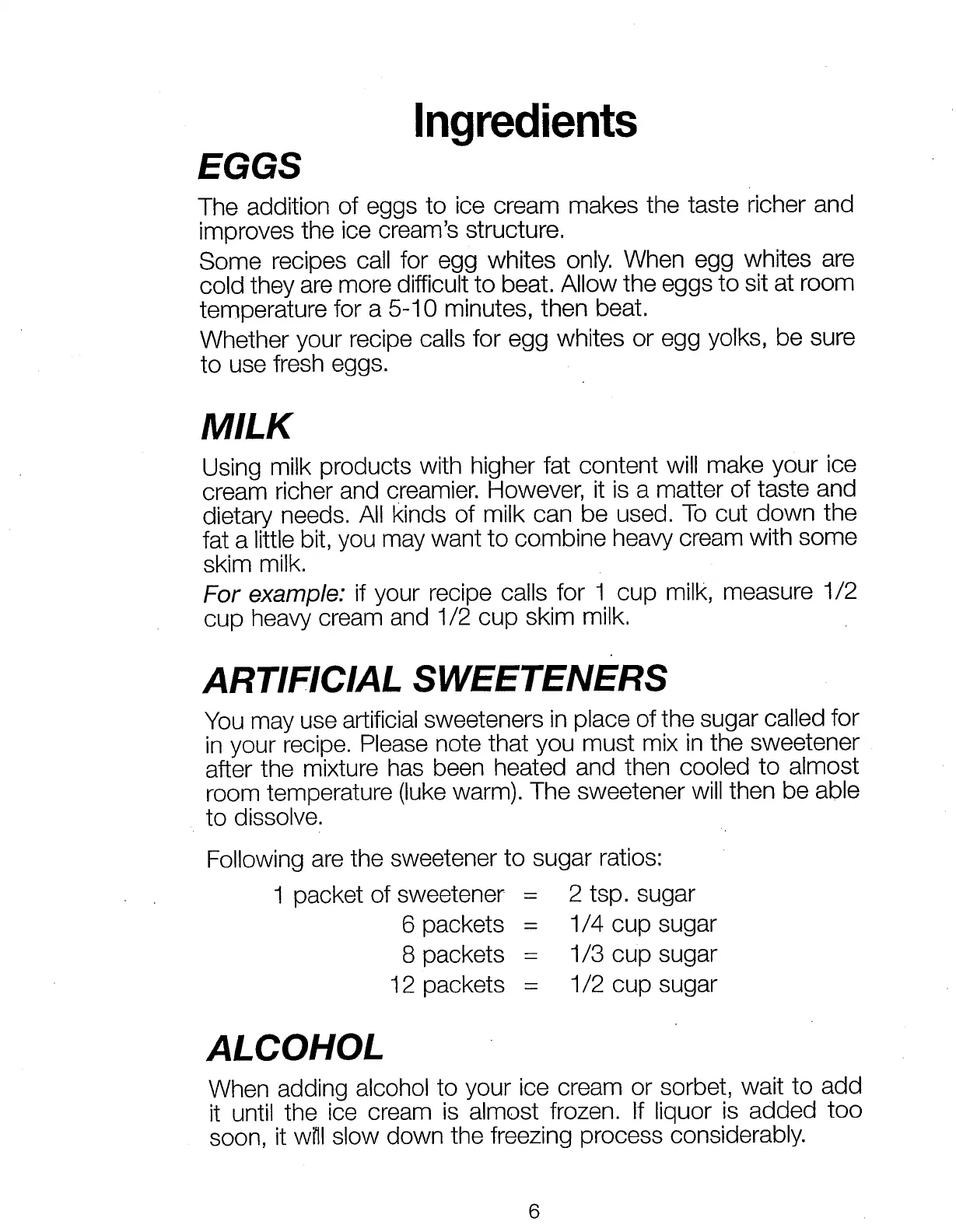 Salton Big Chill ICM21 - Ingredients; EGGS; MILK; ARTIFICIAL SWEETENERS