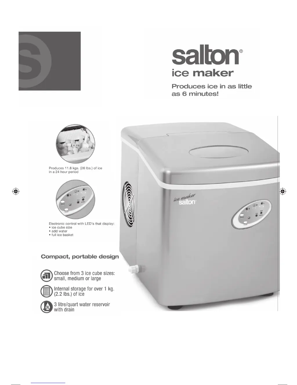 If the ‘Add Water’ LED light is illuminated on your Salton Ice Maker, it indicates a lack of water. Press the Power Button to halt operation, replenish the water supply, and then wait for 3 minutes before restarting the unit. If there is sufficient water, try cleaning the Water Filter.