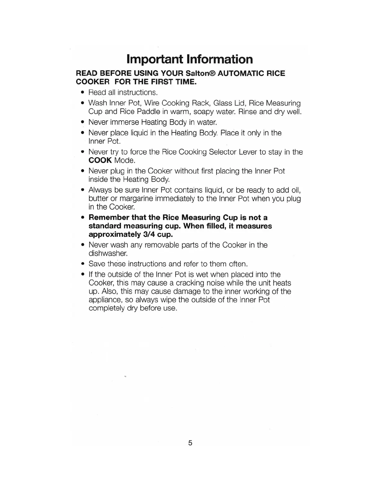 Salton RA3A - Important Information Before Initial Operation