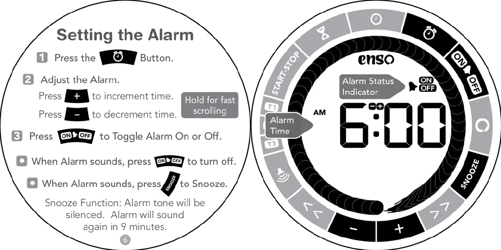 Salubrion Enso Pearl - Setting the Alarm; Adjust the Alarm; Toggle Alarm On or Off; Snooze Function