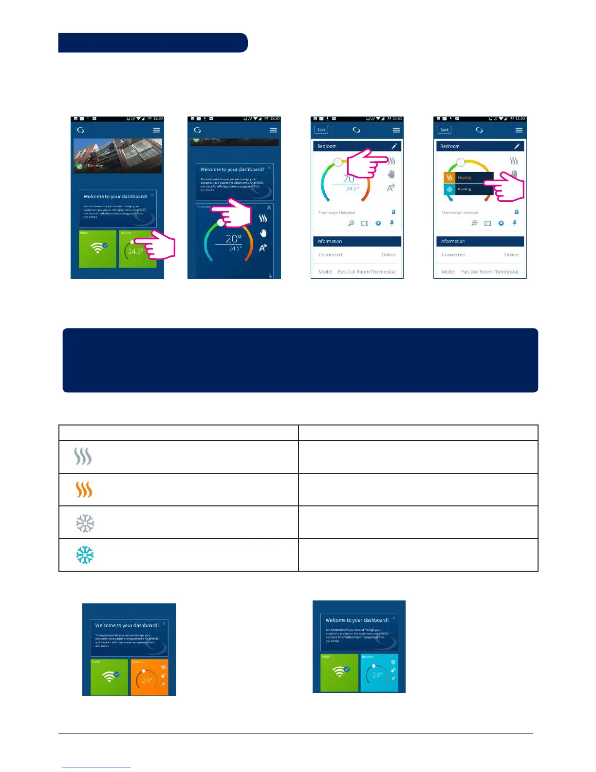Tap to select mode. Select Cool/Heat mode.