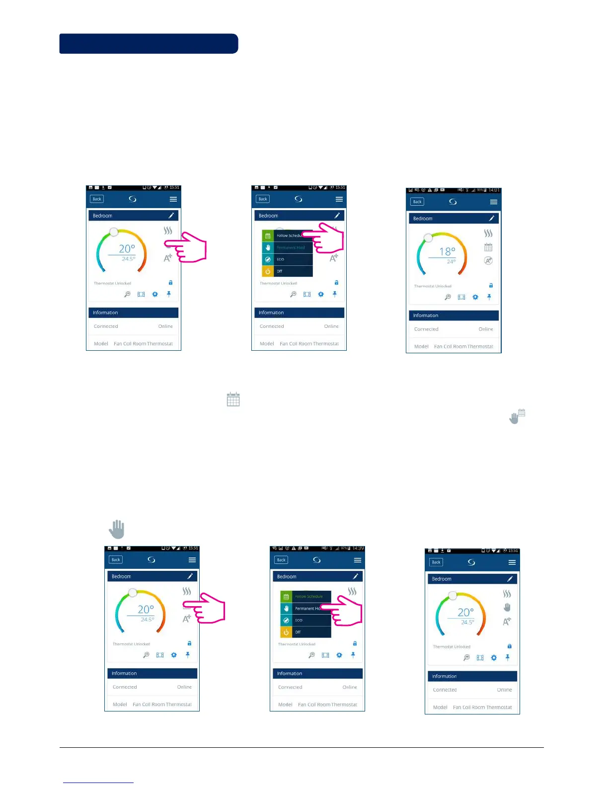 (the user manually changed the temperature during the program), the hand and the calendar icon will