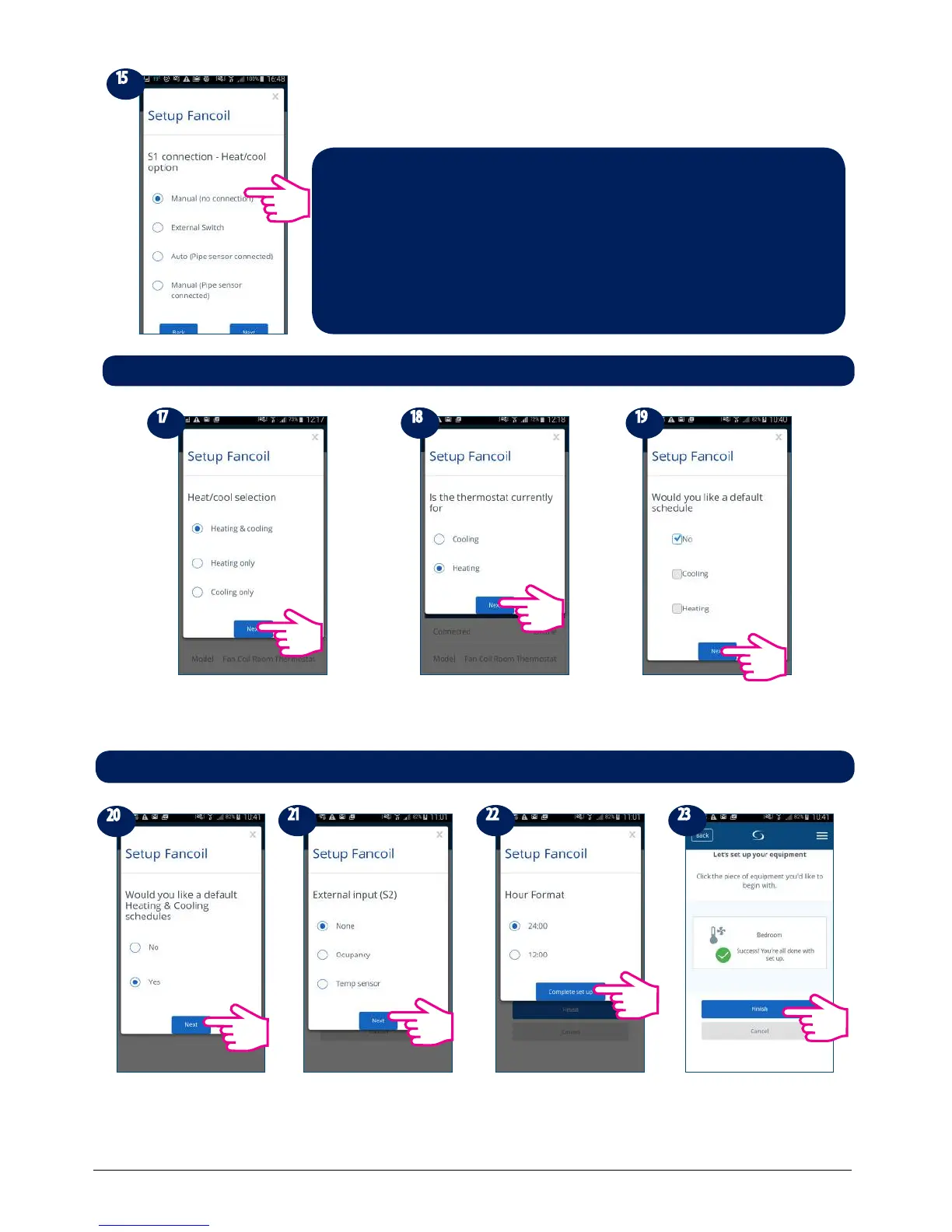 Note: Steps 16-19 apply ONLY with you have a 2 pipe system and selected Manual heating/cooling option
