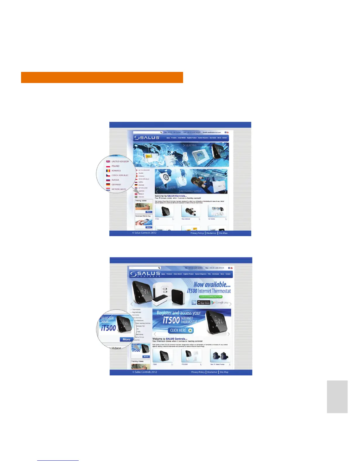1. To register your iT500 online, go to the SALUS controls website. www.salus-controls.com .