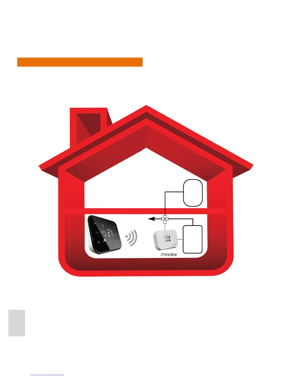 The iT500 Thermostat is connected wirelessly to the iT500RX Receiver.