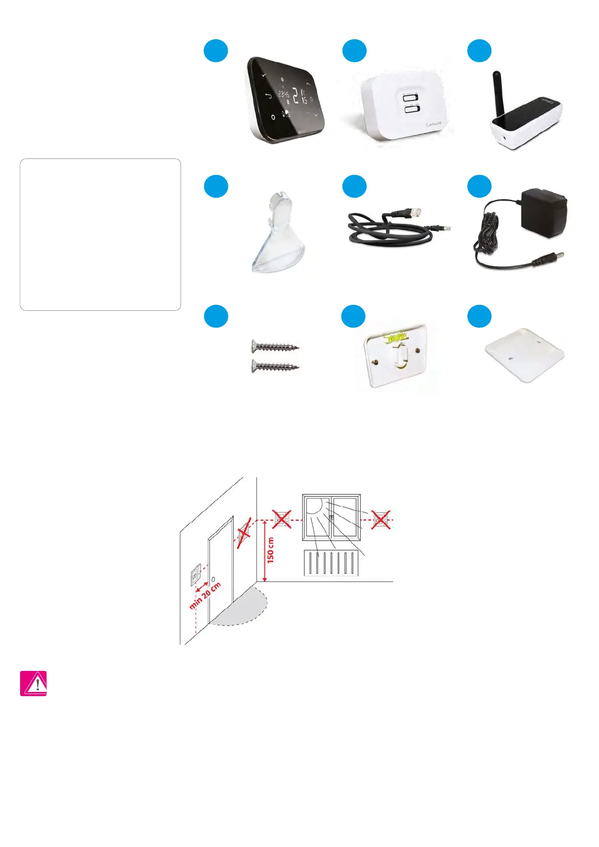 The ideal position to thermostat mounting is about 1,5m under oor level far from heating or cooling sources. Thermostat can’t be