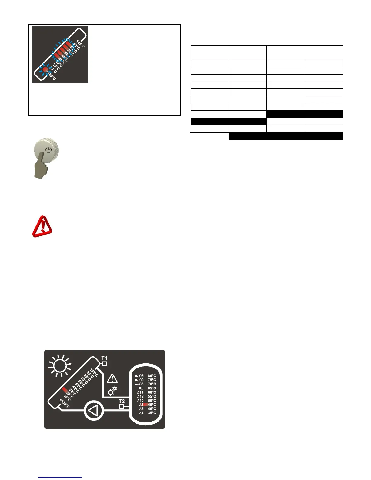 During alarm the collector temperature indicator
