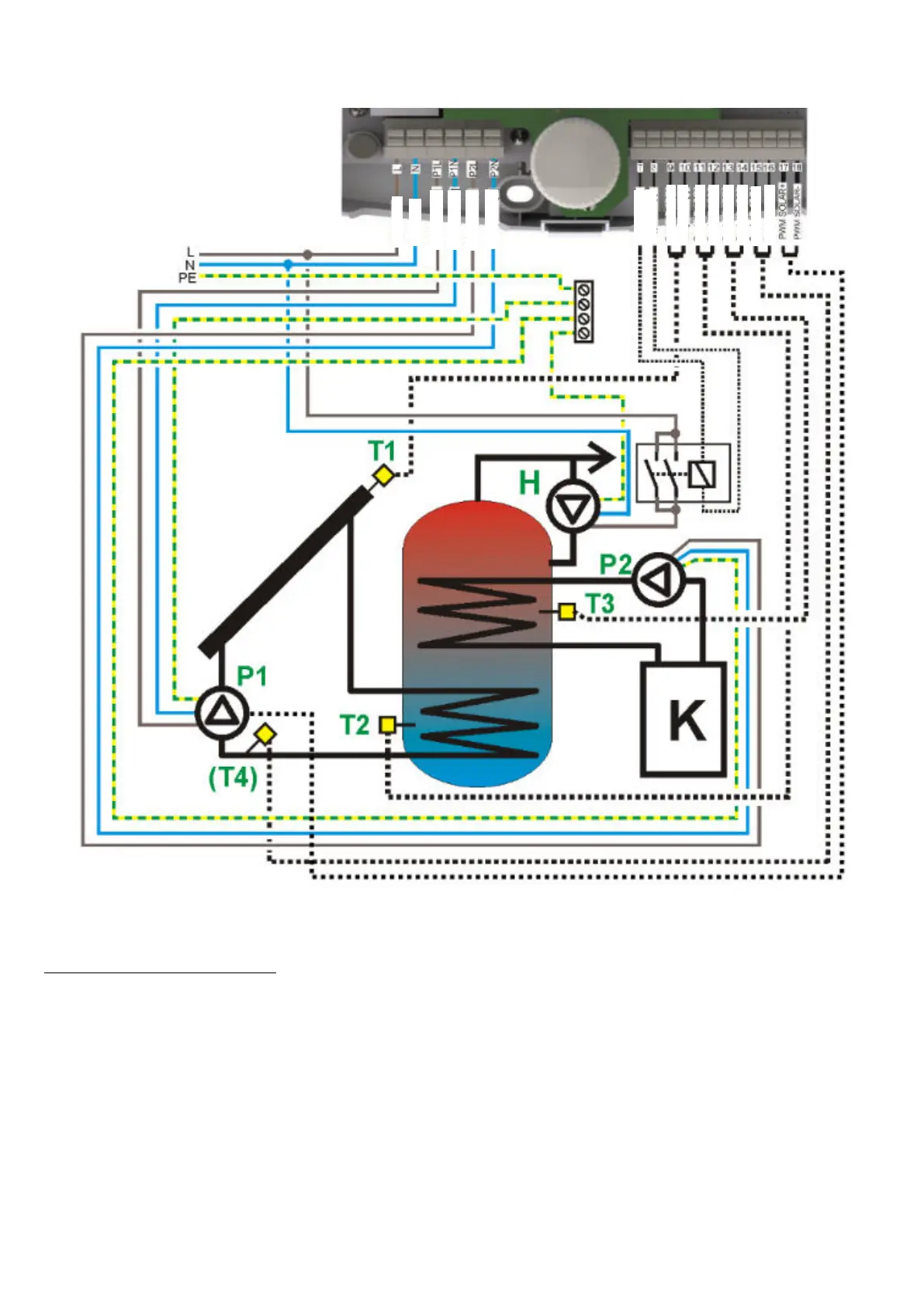 2. Connect the circulation pump to the H output via the relay. It is necessary to use a relay type