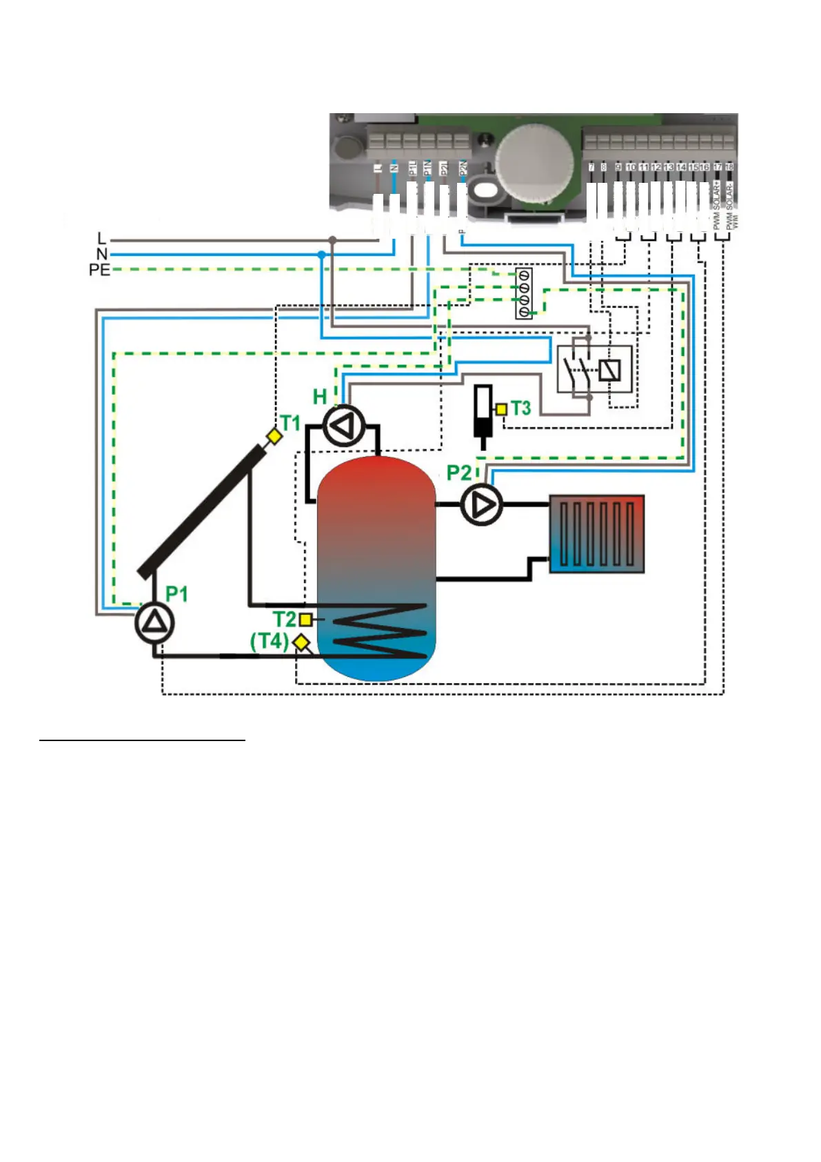 2. Connect the circulation pump to the H output via the relay. It is necessary to use a relay type