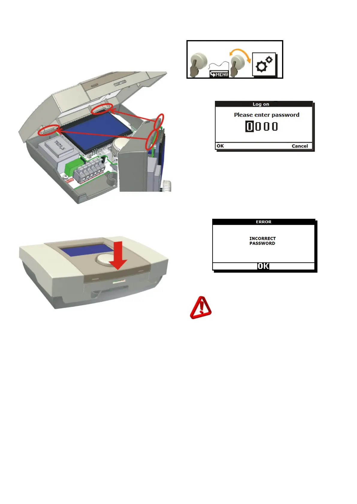 “CANCEL” option. If the password is wrong, the