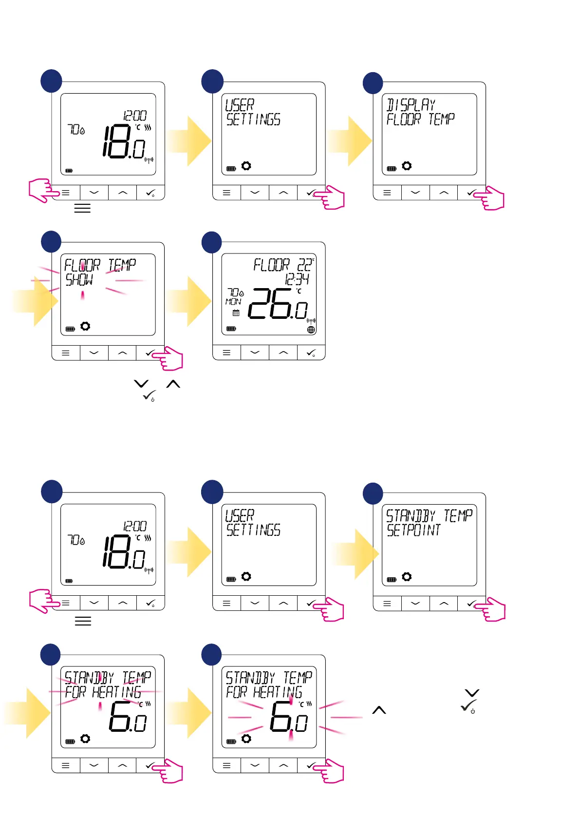 5 ° C to 35 ° C. Standby setpoint range for cooling mode is from 5 ° C to 40 ° C. To set it on please follow steps below: