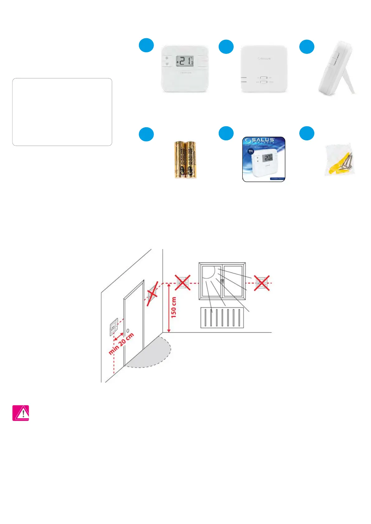 The ideal position to thermostat mounting is about 1,5m under oor level far from heating or cooling sources. Thermostat can’t be