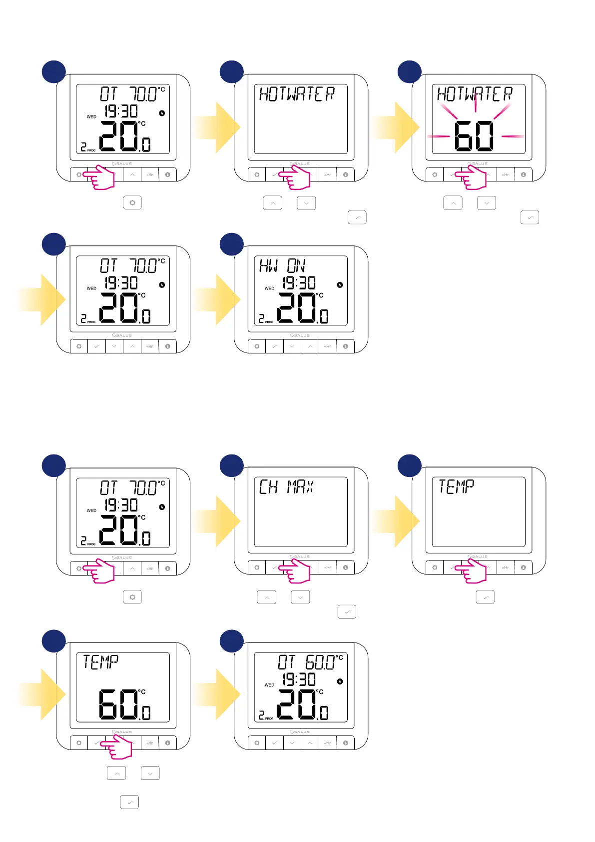 Hot Water submenu and press .