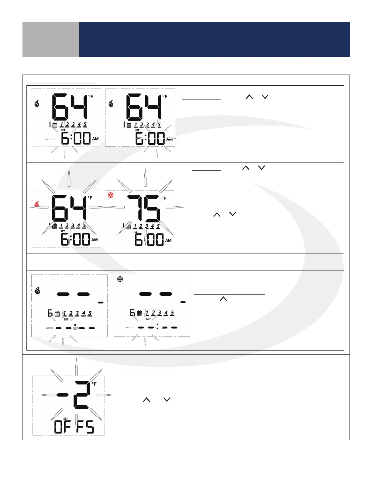 Use the and keys to set the offset in 1°F (0.5°C) increments. The available