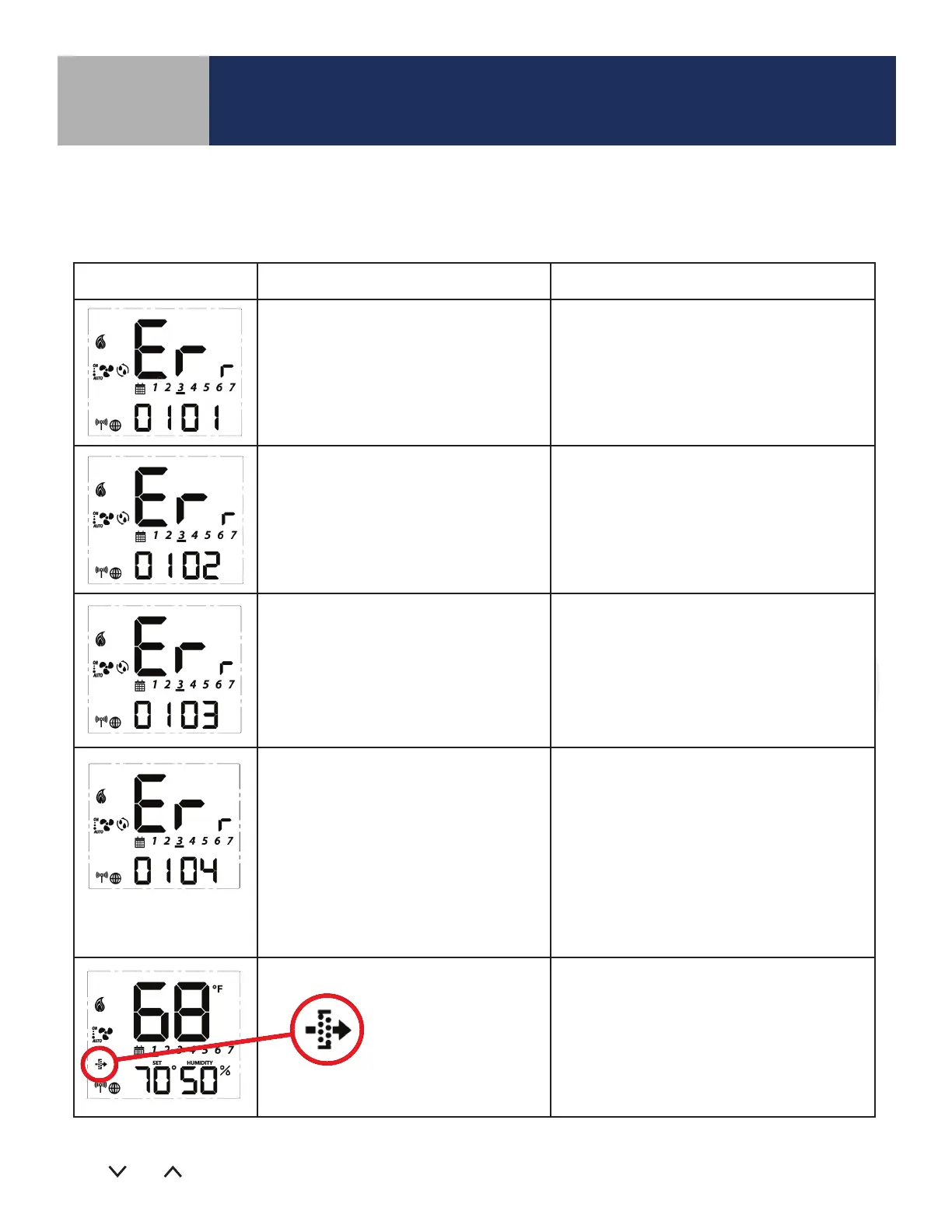 For Errors 01-04 the display will alternate between the message above and the Home Screen. The total