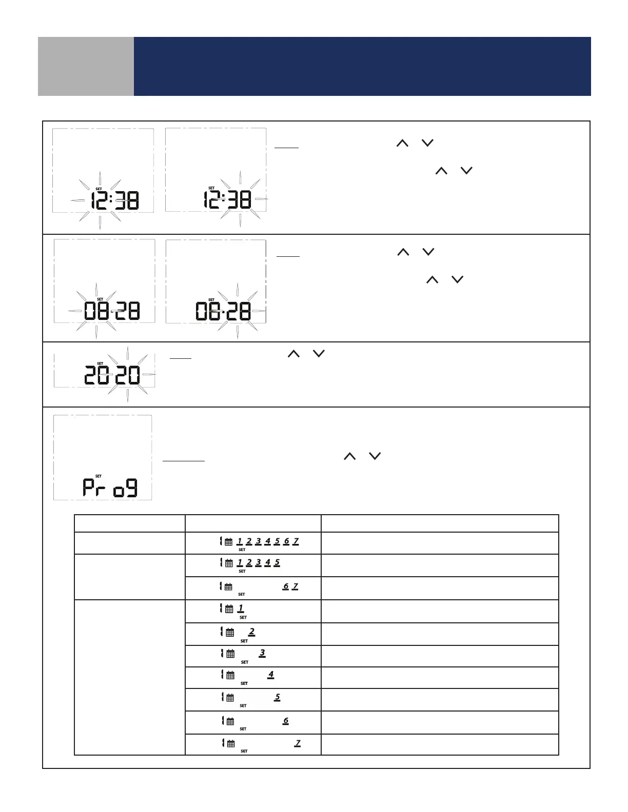 Schedule: While Prog is displayed, press the or keys to change the day group to be edited.