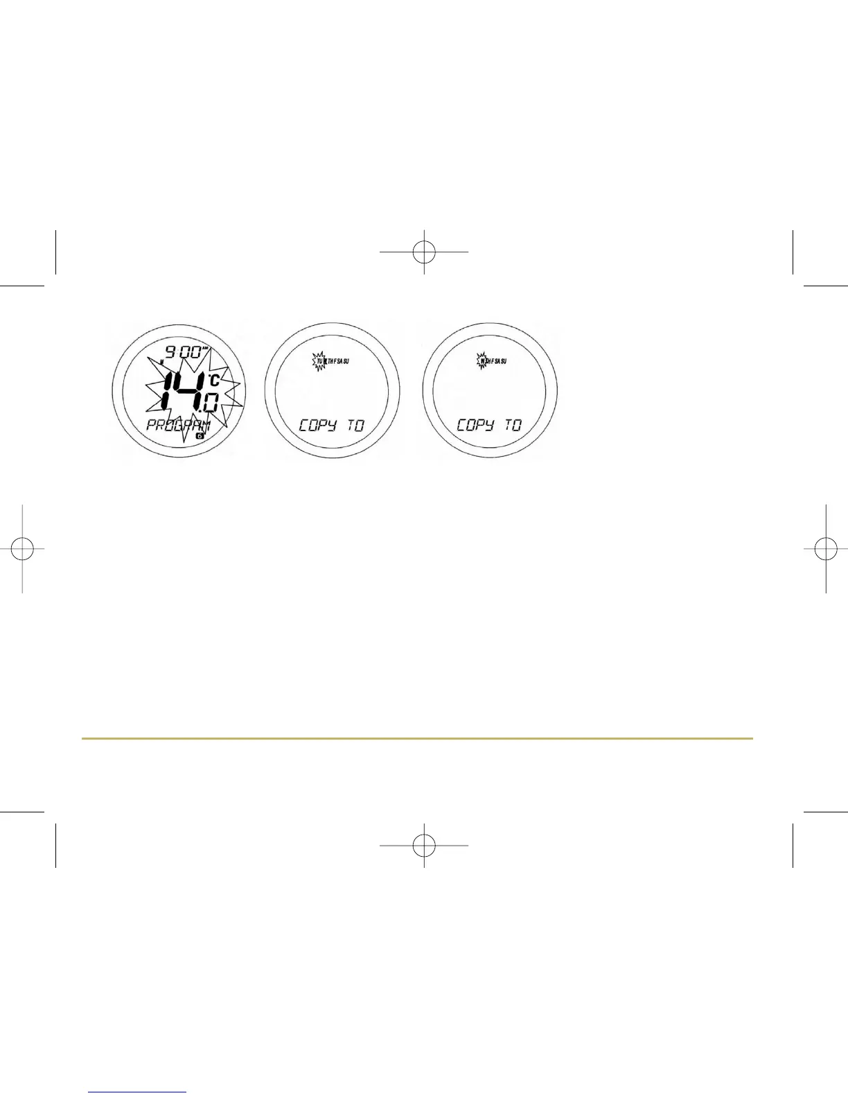 After entering the settings in Programmes 1 to 6 for Monday, the ST620RF display will change to display a COPY TO