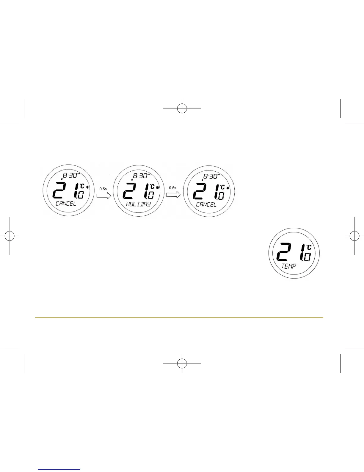 When in HOLIDAY mode, pressing the OK key will make the display change between CANCEL and HOLIDAY every