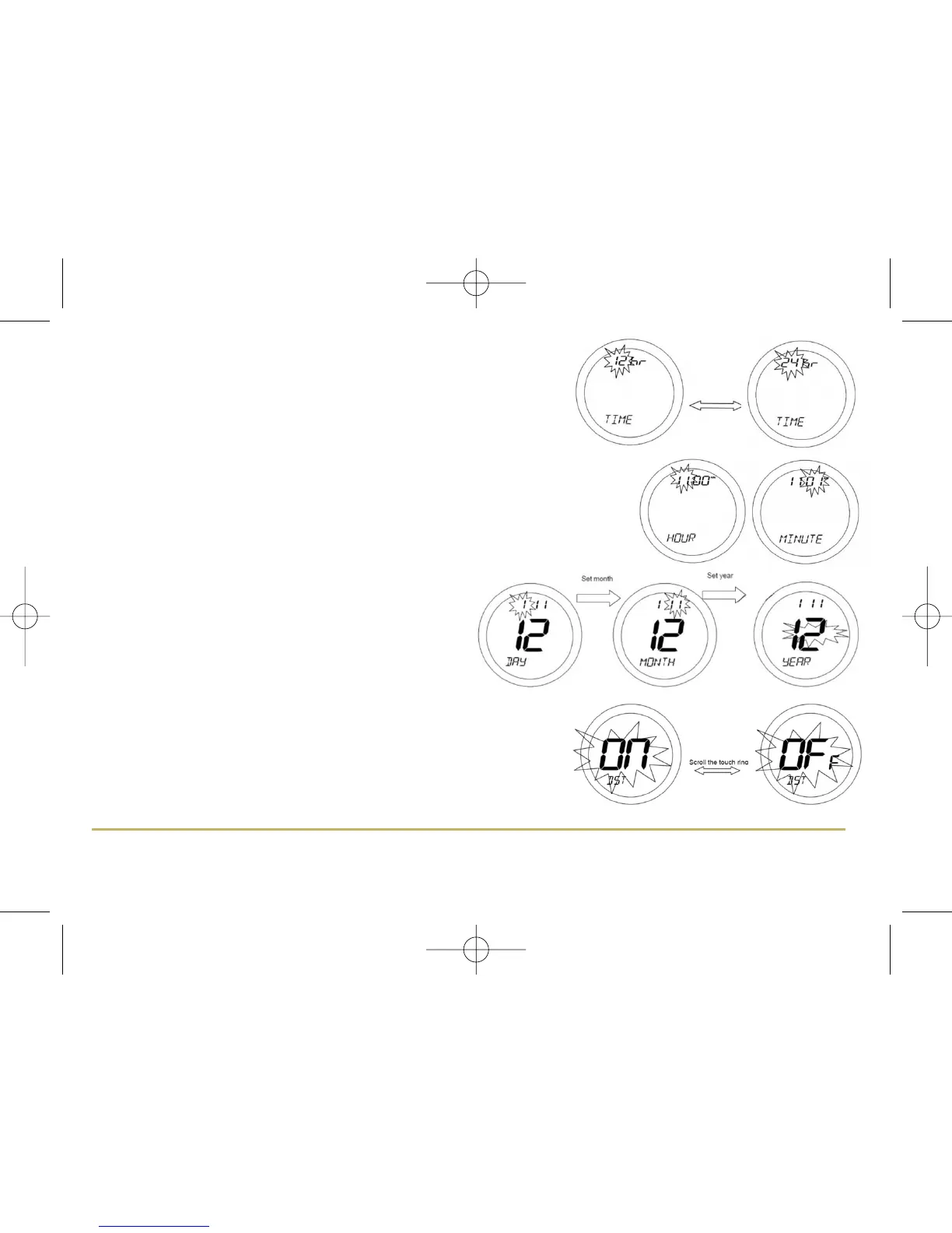 Use the Touch Ring to scroll to set the hour and confirm the choice using the OK button.