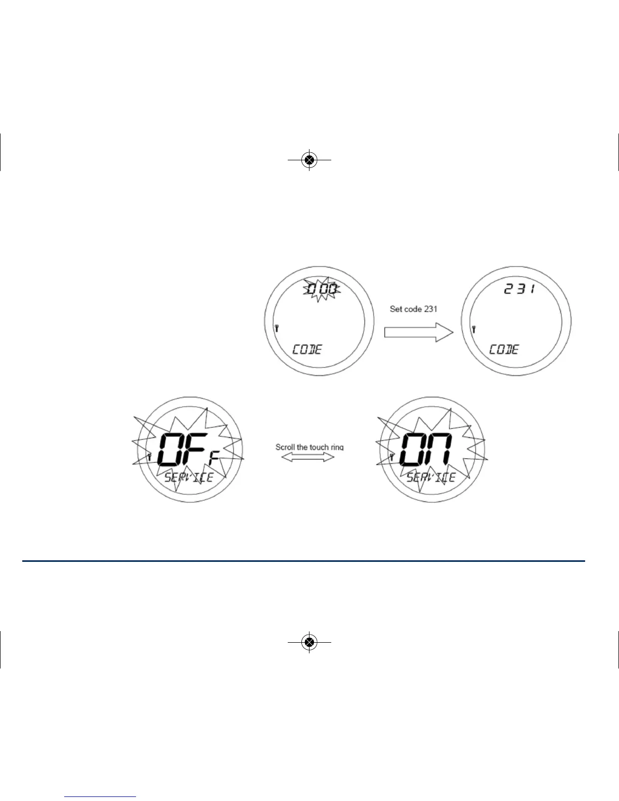 If you require SERVICE mode activated, use the touch ring to scroll from OFF to ON and press OK.